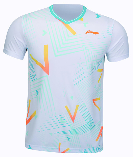 Komplet za tekmovanje in/ali trening, ki ga sestavljajo enobarvne kratke hlače in dres z barvnimi poudarki. Ta komplet je v modni beli barvi in ima na sprednji strani majice značilne barvne grafične poudarke Li-Ning. Neenakomerni gradientni vzorci poskrbijo, da majica izstopa. Moden, praktičen in barvno kontrasten V-izrez. Majica je izdelana iz funkcionalnih tkanin, odvaja vlago in se hitro suši. Priložene so barvno usklajene kratke hlače!