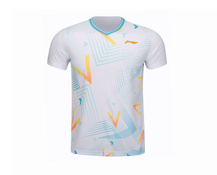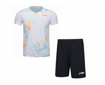 Komplet za tekmovanje in/ali trening, ki ga sestavljajo enobarvne kratke hlače in dres z barvnimi poudarki. Ta komplet je v modni beli barvi in ​​ima na sprednji strani majice značilne barvne grafične poudarke Li-Ning. Neenakomerni gradientni vzorci poskrbijo, da majica izstopa.