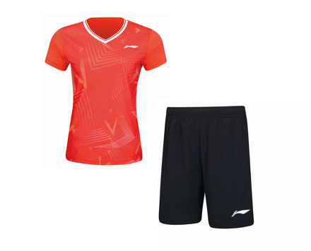 Komplet za tekmovanje in/ali trening, ki ga sestavljajo enobarvne kratke hlače in dres z barvnimi poudarki. Ta komplet je v modni barvi in ima na sprednji strani majice značilne barvne grafične poudarke Li-Ning. Neenakomerni gradientni vzorci poskrbijo, da majica izstopa. Moden, praktičen in barvno kontrasten V-izrez. Majica je izdelana iz funkcionalnih tkanin, odvaja vlago in se hitro suši. Priložene so barvno usklajene kratke hlače! Ena velikost za kratke hlače in majico. Kroj: običajen Sestava materiala: 100 % poliester AT Dry Base: Tehnologija za vpijanje znoja pomaga odvajati znoj in ohranjati udoben občutek na telesu.